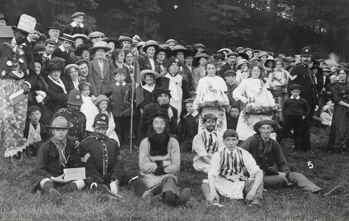 This looks like it was taken in Congleton Park during the carnival – the Scout on the left is holding a box marked “carnival” but we can’t read any more. The policeman on the right is clearly the genuine article.