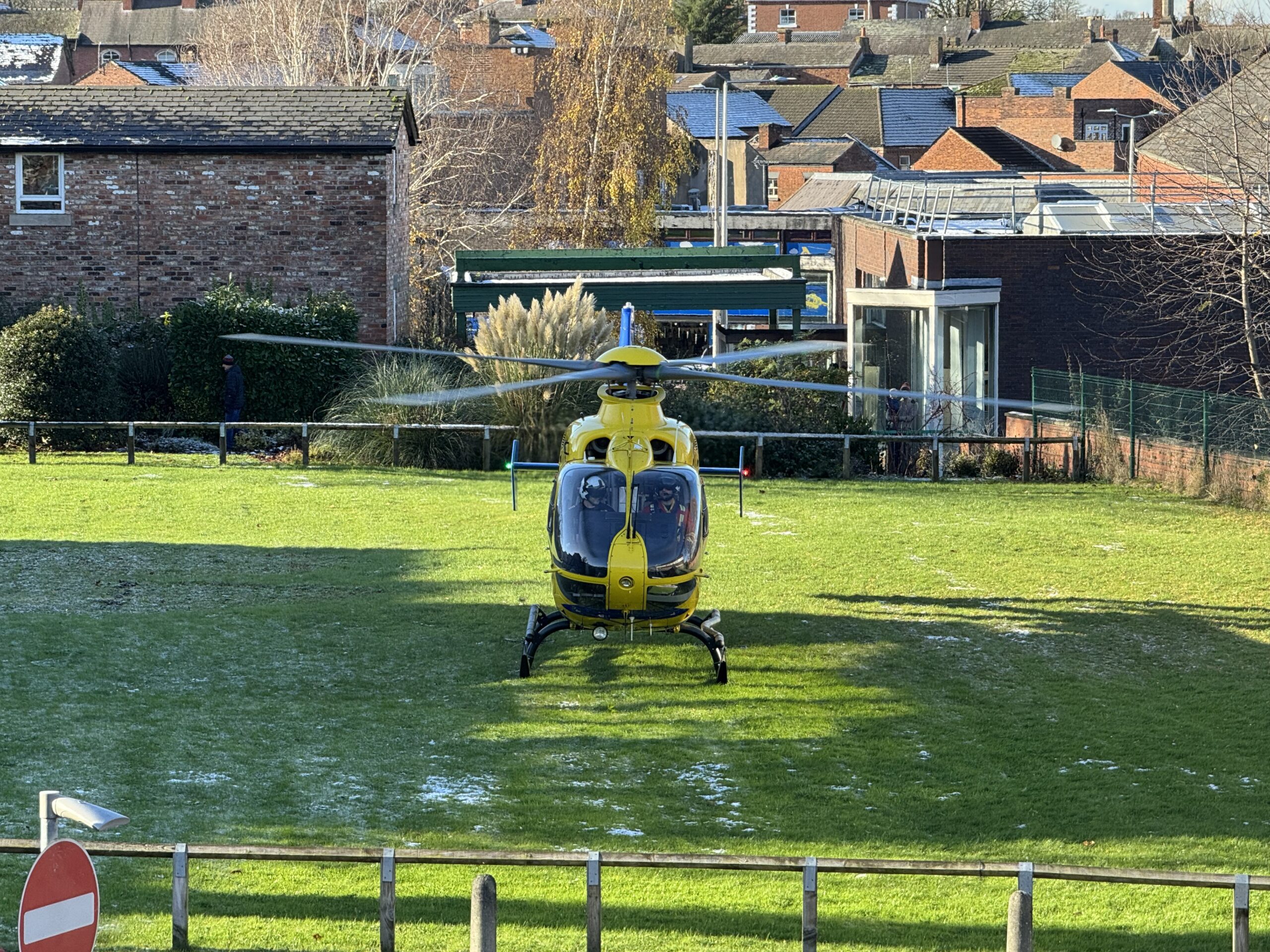 An air ambulance landed outside the police station in Congleton as part of the emergency response after a pedestrian was injured in the town centre.