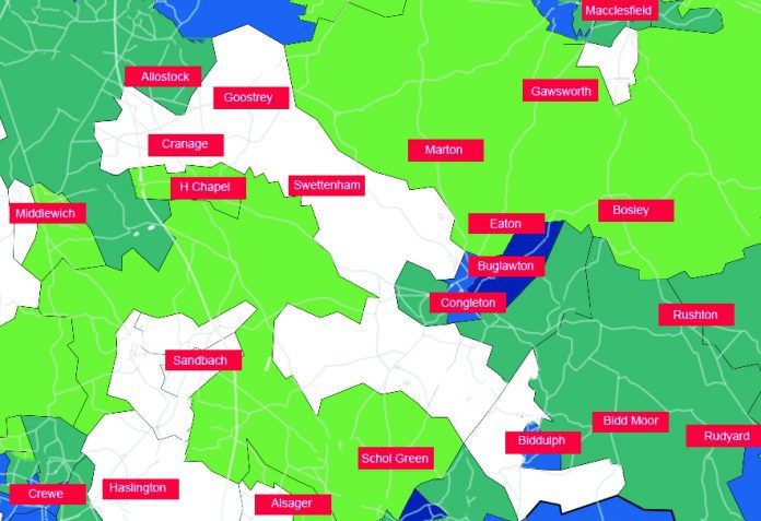 These included Alsager East and Middlewich East, mentioned above; the Scholar Green, Rode Heath and Brereton area, which stretches from Malkins Bank to Church Lawton, with three cases and a rolling rate of 27; Gawsworth and Macclesfield Forest, with four cases and a rolling rate of 41; and Alderley Edge and Chelford, with three cases and rolling rate of 36.