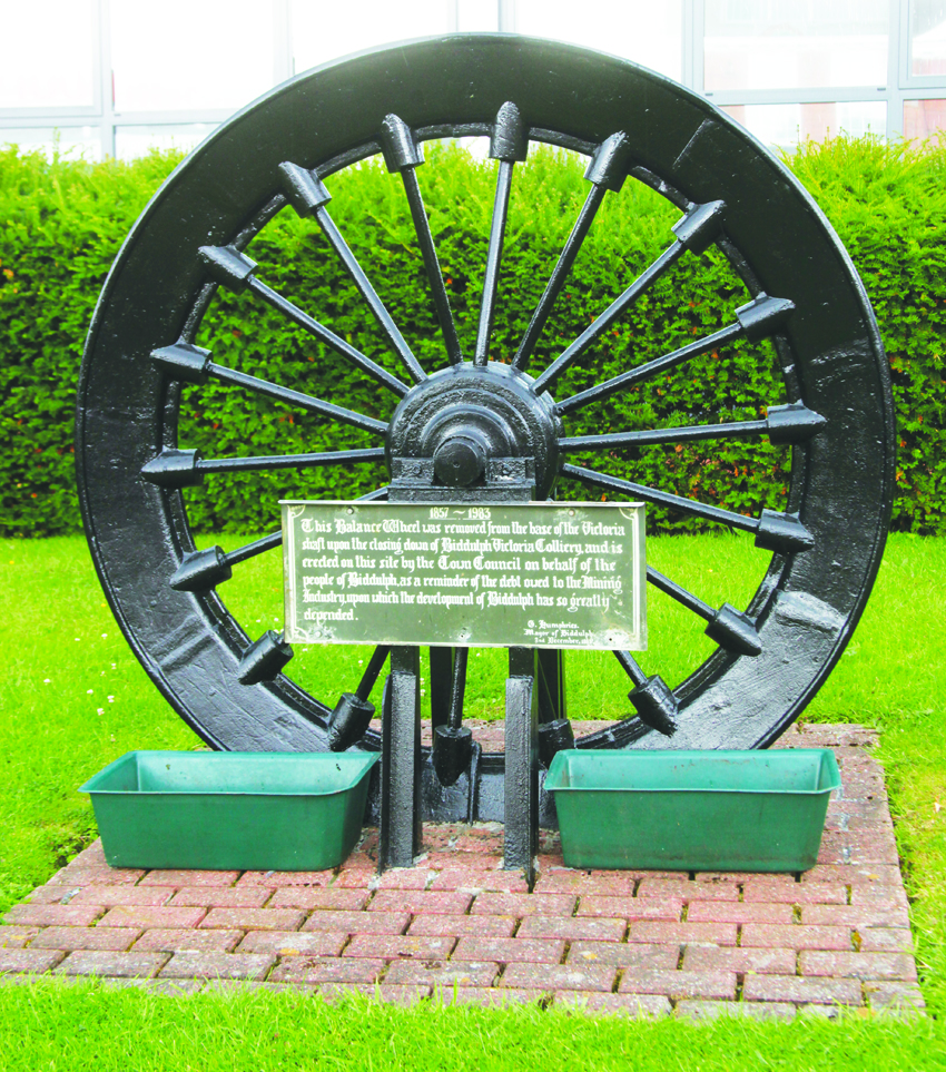 The wheel once stood at the foot of the lift shaft at the town’s Victoria Colliery. It has served as a monument to Biddulph’s mining community since 1983 when it was placed outside the town hall by George Humphreys, who worked down the pit, during his year as town mayor.