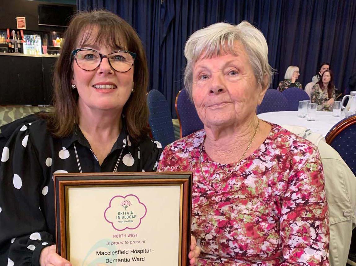 Staff and volunteers were celebrating after the dementia garden on ward nine at Macclesfield District General Hospital won silver at the recent North West in Bloom Awards.