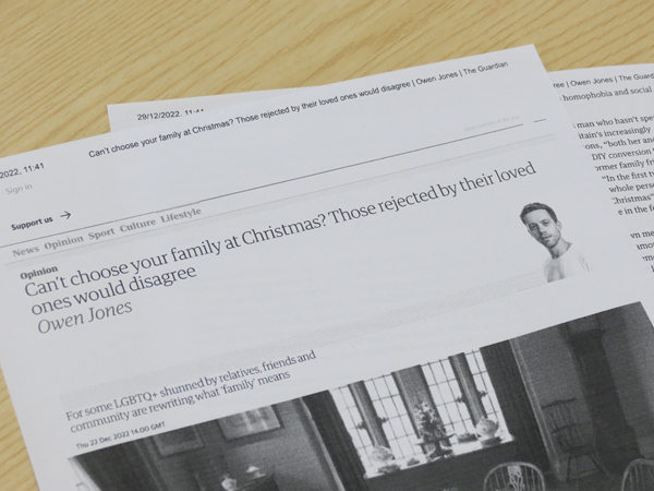 Owen Jones, a political commentator for the Guardian, wrote in a recent opinion piece that many LGBTQ+ people were isolated at this time of year because they might otherwise face abuse from family members.