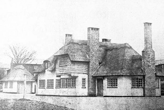 Designed in the Tudor style, a conspicuous feature of the new Church House was the “beautiful” Norfolk reed thatch roof. In the lounge there was an inglenook. The walls of this room, and of the passages and staircase, were panelled in oak and there was a smoke-room and public bar. The flooring was constructed of rock- asphalt, surfaced with “Korkoid” buff panels with green strips.