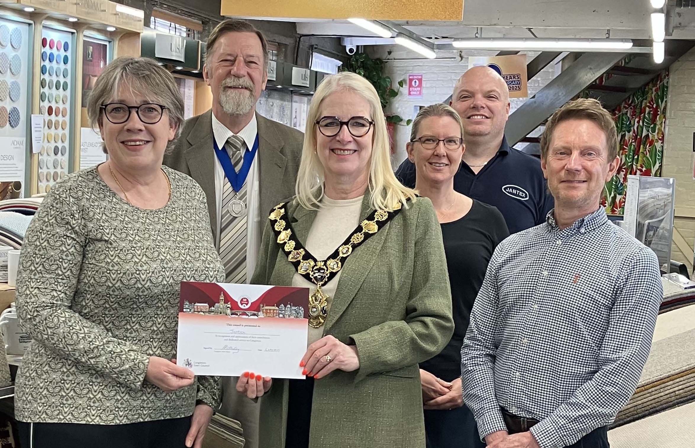 Congleton town mayor Coun Kay Wesley has given a High Street award to Jantex Furnishings for longstanding service as a retailer to the Congleton community.