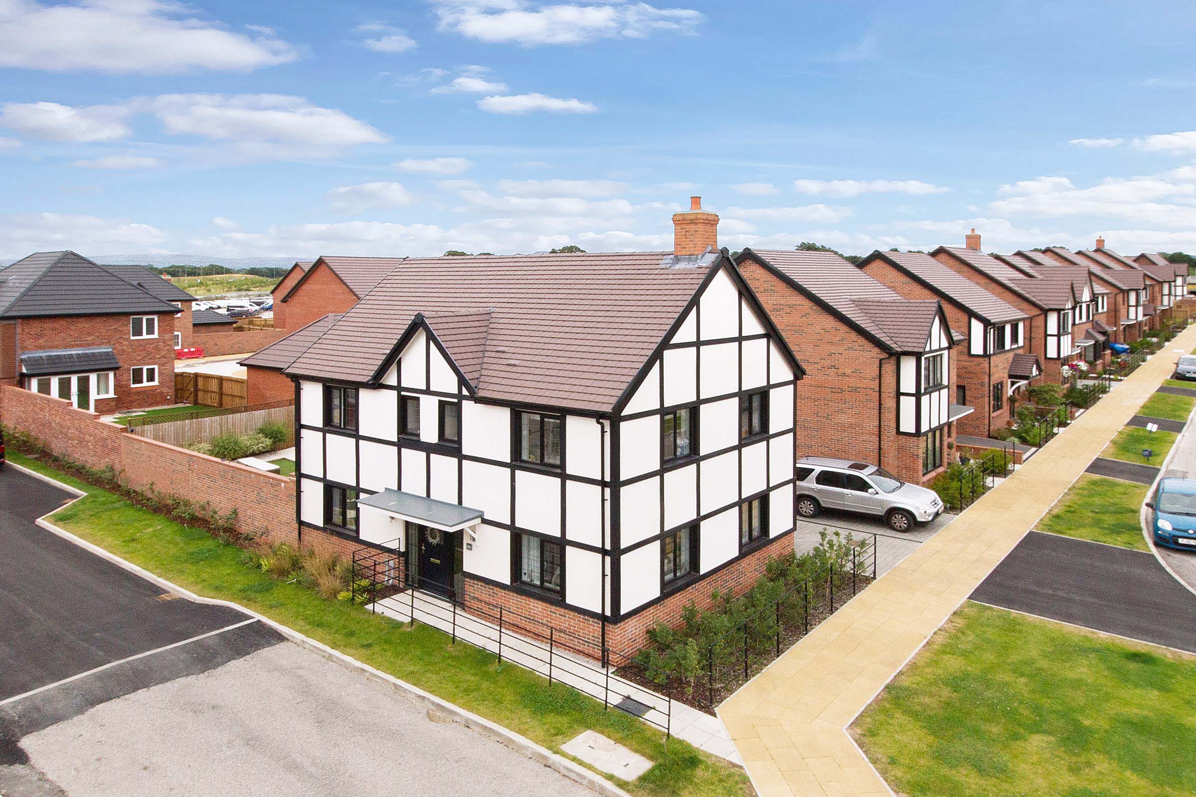 The house type is “The Bowyer”, and it has a mock Tudor façade with views from the lounge over a wildlife pond.