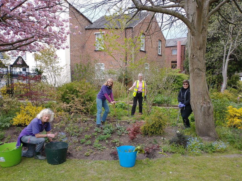 On Saturday, 20 volunteers turned out to help at Congleton Park. A number of Dane Valley Beavers helped Patti Pinto tread down some newly-laid bark paths through the newly-designed and planted hot and cool borders before they went off litter picking.