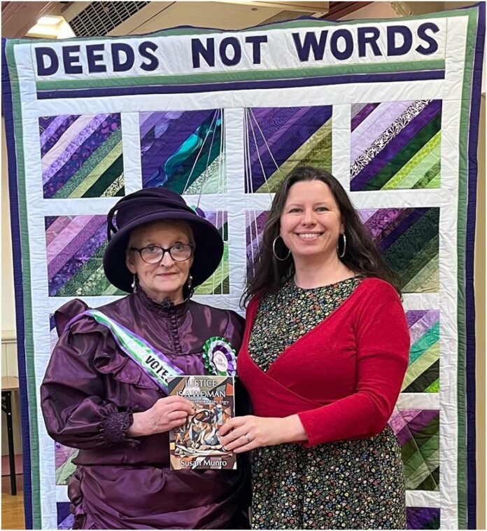 Susan Munro, chair of Elizabeth’s Group, presented Mrs Russell with a signed copy of her new book, “Justice is a Woman – the Wolstenholme Elmy Story” and also asked her to place another copy in the library at the House of Commons to commemorate Elizabeth. The MP said she was glad to do so.