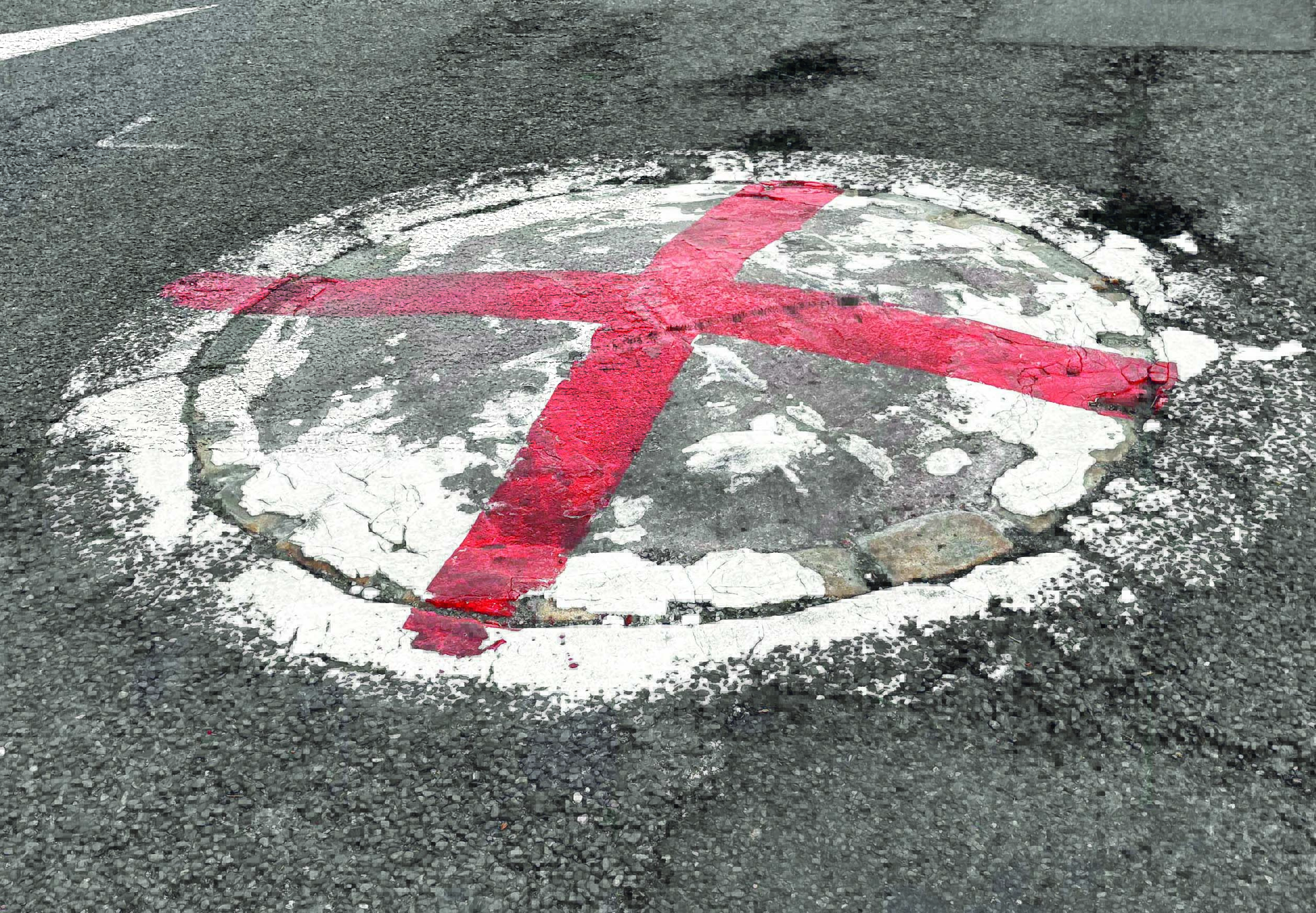 The red crosses have been painted onto mini roundabouts in Biddulph, one on Park Lane and one at the top of St John’s Road going into St David’s Way.
