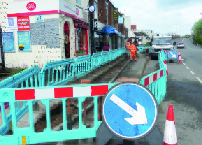 The side of Biddulph Road was being dug up for fibre optics cable works, along the stretch running from outside Hightown Post Office to the Curtains By Design shop.