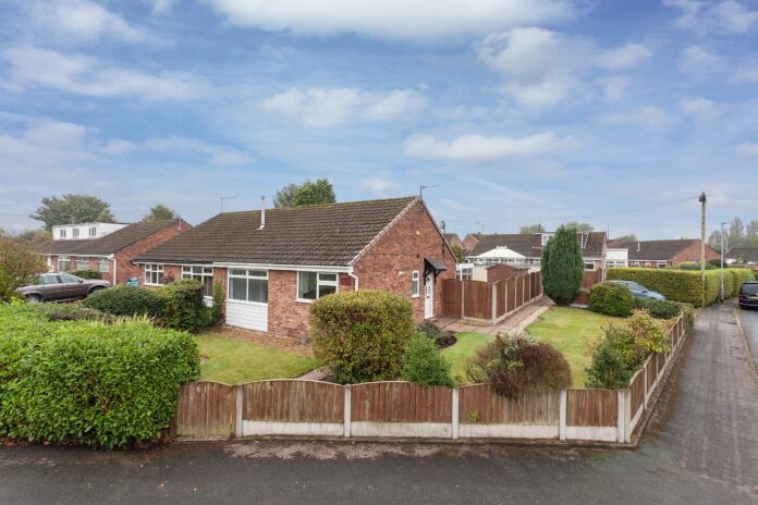 The “charming” semi-detached bungalow occupies a good-sized corner plot with gardens to three sides.