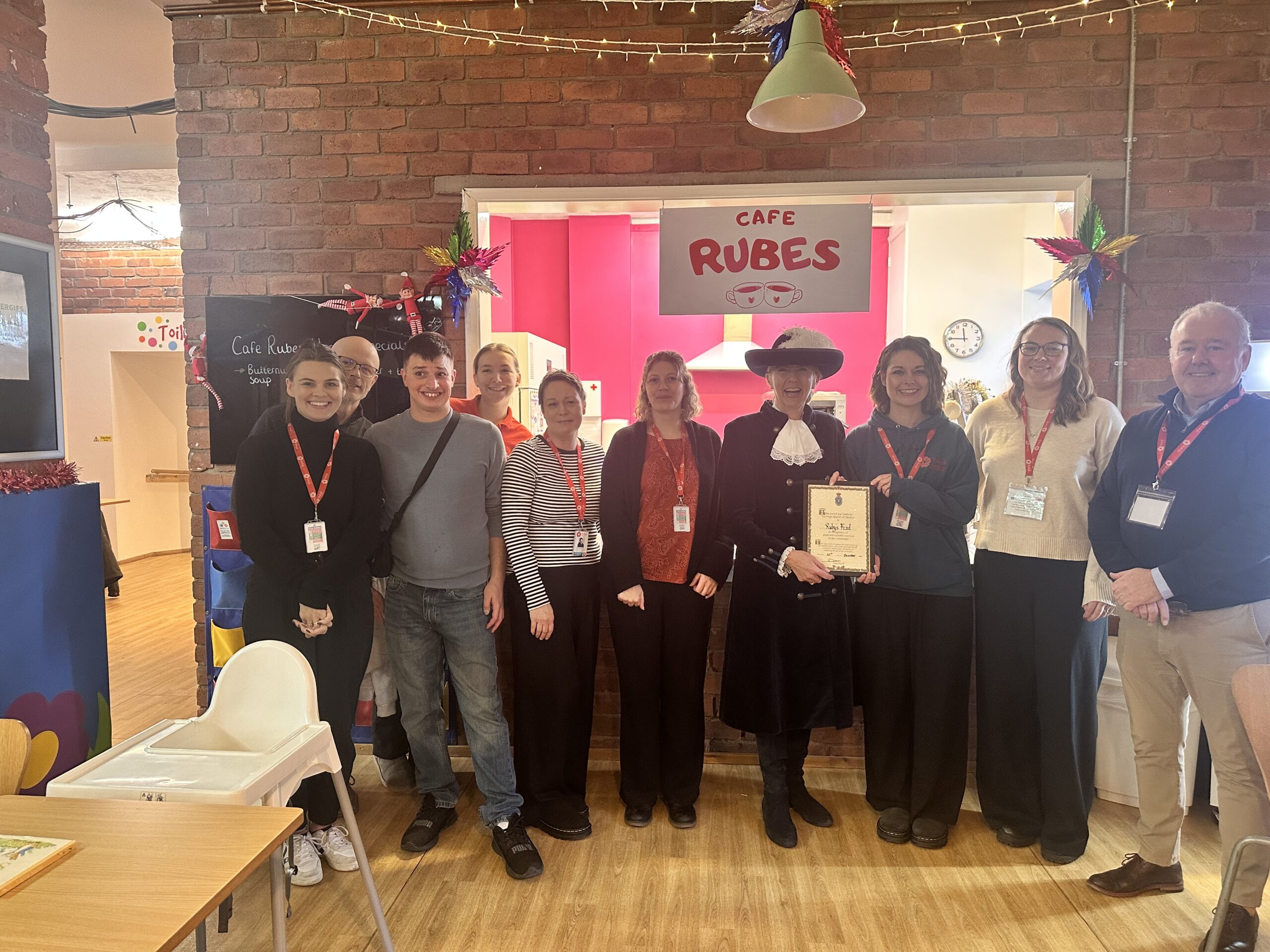 In the autumn, High Sheriff of Cheshire Joëlle Warren MBE DL visited the Roe Street centre and presented an award to Ruby’s in recognition of its valuable services to the community.